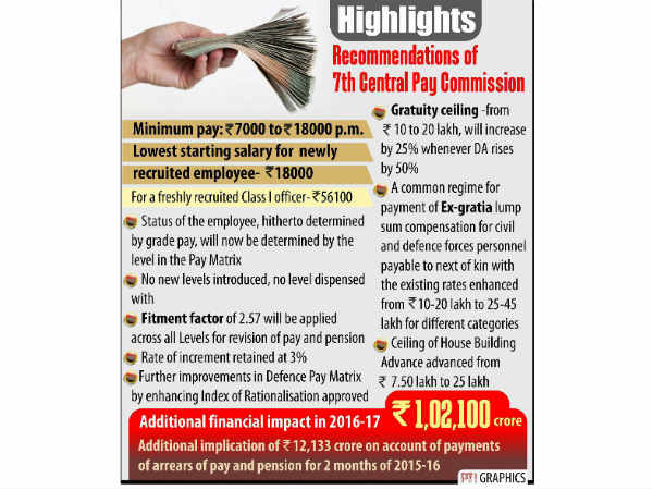 - इस वेतन आयोग के साथ ही वर्तमान पे बैंड और ग्रेड को खत्म किया गया। नागरिकों, डिफेंस पर्सनल और मिलिट्री नर्सिंग सर्विस से जुड़े लोगों के लिए अब अलग-अलग पे स्केल होगा।