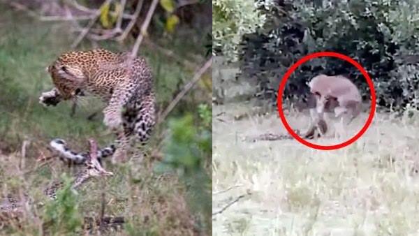 इस वीडियो को आईएफएस अधिकारी सुसंता नंदा ने अपने ट्विटर हैंडल पर शेयर किया है। वीडियो में नजर आ रहा है कि घने जंगल के बीच एक अजगर बैठा हुआ है, जिसे देखकर एक तेंदुआ उसका शिकार करने के मकसद से उसके ऊपर हमला करता है। हमले की आहट महसूस होते ही अजगर तुरंत पलटवार करते हुए तेंदुए को ही अपने काबू में ले लेता है। हालांकि तेंदुआ भी अजगर के हमले से तुरंत संभल जाता है और उसके चंगुल से छूटकर वापस उसपर पूरी ताकत के साथ हमला करता है। इसके बाद तेंदुआ अजगर को मार देता है और वहां से चला जाता है।