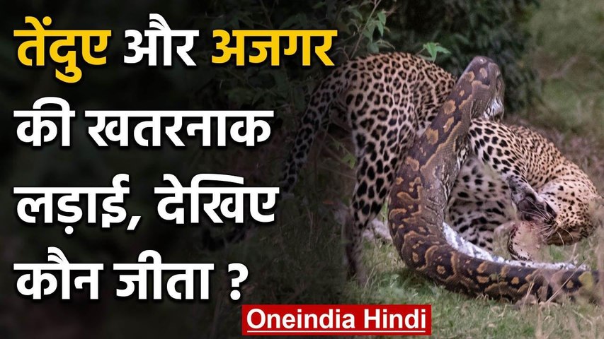 वीडियो में एक तेंदुए और अजगर के बीच भयानक लड़ाई हो रही है। जानिए, तेंदुए और अजगर की इस लड़ाई में कौन जीता...?