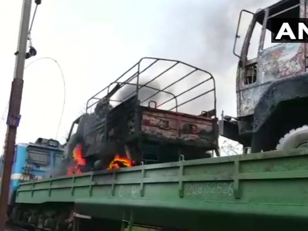 बैतूल: मालगाड़ी में लगी आग, सेना के 4 ट्रक जलकर हुए खाक