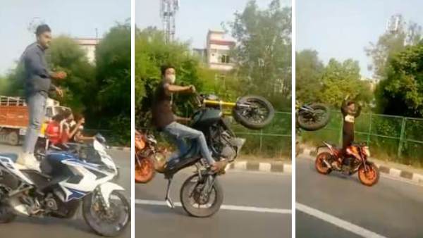 नई दिल्ली। इस समय सोशल मीडिया पर एक वीडियो तेजी से वायरल हो रहा है, जिसमें पांच लड़के बीच सड़क पर हुड़दंग मचाते हुए दिख रहे हैं। वीडियो में देखा जा सकता है कि कैसे ये लड़के बीच सड़क पर दूसरों की जिंदगी को खतरे में डालते हुए खतरनाक स्टंट कर रहे हैं। इनमें से किसी ने भी हेलमेट नहीं लगाया है और कुछ तो ऐसे हैं जिन्होंने मास्क तक नहीं पहना। आसपास से गुजर रहे लोगों ने ये वीडियो बनाकर सोशल मीडिया पर पोस्ट किया, जो थोड़ी ही देर में वायरल हो गया।