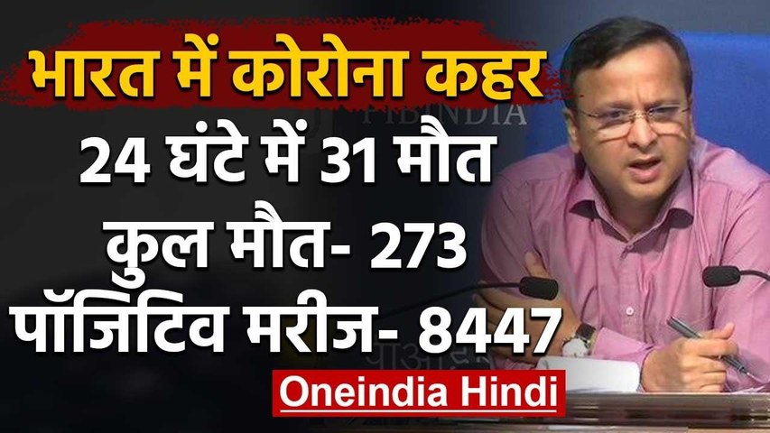 ICMR ने कहा है कि उसने शनिवार रात 9 बजे तक देश में 1,64,773 लोगों से कोविड-19 संक्रमण के लिए 1,79,374 सैंपल्स का टेस्ट किया है, जिसमें से 4.3 प्रतिशत पॉजिटिव पाए गए। वहीं स्वास्थ्य मंत्रालय के संयुक्त सचिव लव अग्रवाल ने प्रसे कॉन्फ्रेंस में इसकी जानकारी देते हुए कहा कि पिछले 24 घंटे में कोरोना के 1,035 नए केस आए औरवहीं 24 घंटे में 40 लोगों की जान चली गई। वहीं शनिवार के आकड़े सामने आने के बाद देश में मरीजों की संख्या 8000 से करीब पहुंने जा रही है। शनिवार को स्वास्थ्य विभाग द्वारा दी गई जानकारी के मुताबिक देश में आधिकारिक आंकड़ा 7,529 और देशभर में मौतों की संख्या 242 पहुंच गई। इसके बार देर रात तक नए मामलों की जानकारी आती रही है।