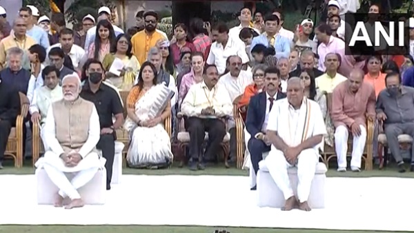 नई दिल्ली, 02 अक्टूबर: गांधी जयंती के अवसर पर नई दिल्ली में गांधी स्मृति में आयोजित प्रार्थना सभा में प्रधानमंत्री नरेंद्र मोदी और उपराष्ट्रपति जगदीप धनखड़ शामिल हुए। देश के राष्ट्रपिता महात्मा गांधी की रविवार 02 अक्टूबर को आज 153वीं जयंती है। पीएम नरेंद्र मोदी ने रविवार को इससे पहले राजघाट पर महात्मा गांधी को पुष्पांजलि अर्पित की थी। पीएम मोदी ने विजय घाट पर पूर्व प्रधानमंत्री लाल बहादुर शास्त्री को भी पुष्पांजलि अर्पित की।