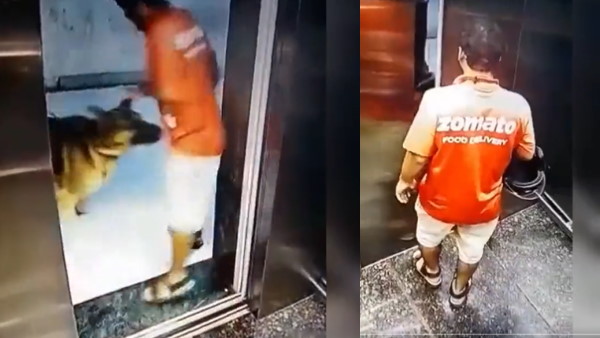 Shocking : लिफ्ट से बाहर निकलते ही कुत्ते ने डिलीवरी ब्वॉय के प्राइवेट पार्ट पर काटा, VIDEO आया सामने