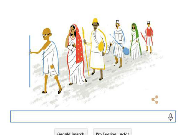 गूगल हमारे खुशियों का जश्न अपने डूडल के जरिए मनाता रहा है। पिछले कई बरसों की तरह इस बार भी गूगल भारत की आजादी का जश्न अपने तरीके से मनाया है। देश के 69वें स्वतंत्रता दिवस के मौके पर गूगल ने महात्मा गांधी की दांडी मार्च को याद करते हुए डूडल तैयार किया है।