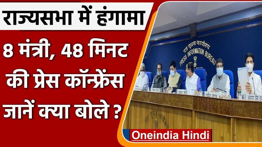 नई दिल्ली, 12 अगस्त। राज्यसभा में बुधवार को महिला सांसदों के साथ कथित धक्कामुक्की का मामला गरमाता जा रहा है। गुरुवार को आरोपों पर सरकार ने आरोपों का जवाब देने के लिए 8 केंद्रीय मंत्रियों की टीम को उतारा। केंद्रीय मंत्री पीयूष गोयल, अर्जुन मेघवाल,धर्मेंद्र प्रधान, भूपेंद्र यादव , वी मुरलीधरन, अनुराग ठाकुर और प्रह्लाद जोशी ने प्रेस कॉन्फ्रेंस कर विपक्ष के आरोपों का खारिज किया।