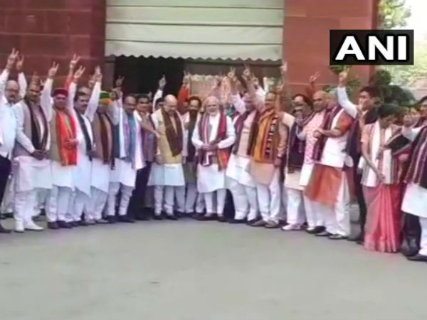नई दिल्ली। संसद के बजट सत्र के दौरान प्रधानमंत्री नरेंद्र मोदी का तमाम भाजपा के सांसदों और मंत्रियों ने जोरदार स्वागत किया। संसद में प्रधानमंत्री के पहुंचने से पहले भाजपा अध्यक्ष अमित शाह सहित तमाम मंत्री सहित सांसदों ने प्रधानमंत्री का स्वागत किया। आज से संसद का बजट सत्र का दूसरा सत्र शुरू हो रहा है। जिस तरह से पूर्वोत्तर के तीन राज्य त्रिपुरा, नागालैंड और मेघालय में भाजपा और उसके सहयोगी दलों की सरकार बनी है उसके बाद पार्टी में खुशी की लहर है।