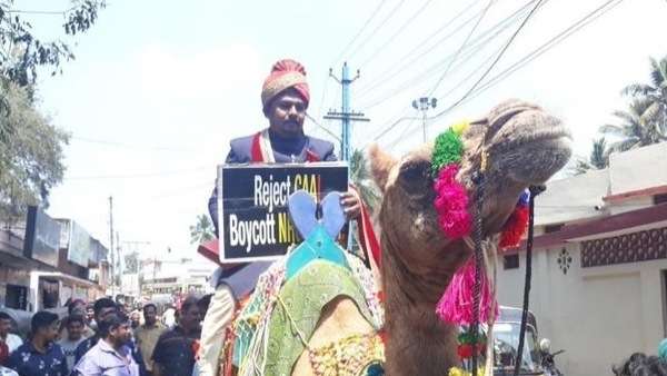 केरल: ऊंट पर बैठकर शादी में पहुंचा दूल्हा, हाथ में ले रखा था एंटी CAA का पोस्टर