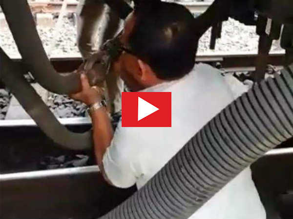 VIDEO: डिब्बों के बीच पाइप जोड़ रहा था गार्ड, तभी ड्राइवर ने चला दी ट्रेन, ऐसे बची जान