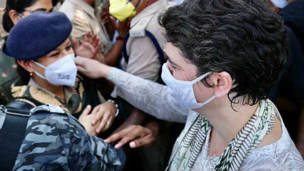 हाथरस केस: जब धक्का मुक्की के बीच प्रियंका ने रखा महिला पुलिसकर्मी के कंधे पर हाथ, यूं हंसकर किया अभिवादन