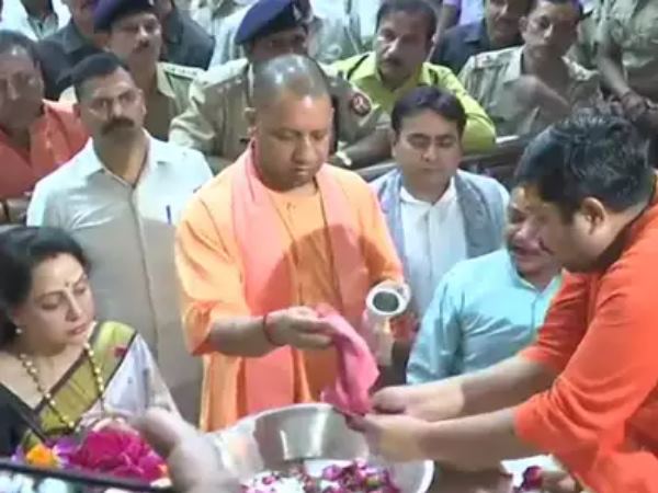 लोकसभा चुनाव 2019: नामांकन भरने से पहले सीएम योगी के साथ बांके बिहारी मंदिर पहुंचीं हेमा मालिनी