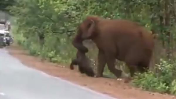 'बच्चे के शव को ले जाते हुए रोते हुए हाथी'