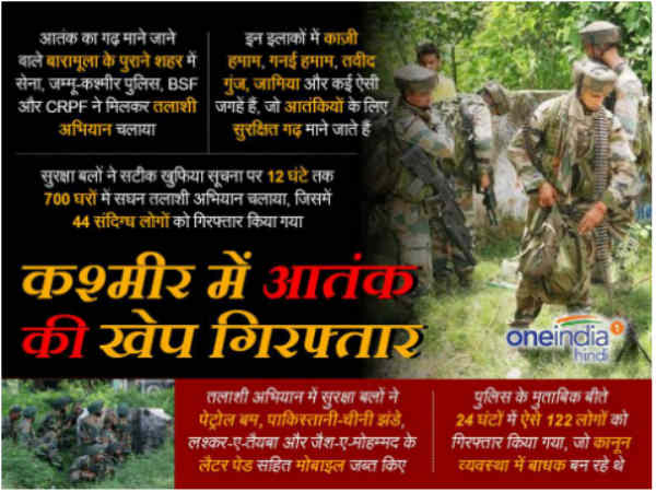 बारामूला के पुराने बारामूला में एक दशक बाद एक ऐसा सर्च ऑपरेशन चलाया गया है जिसमें सेना, पुलिस और पैरामिलिट्री के जवान शामिल है। हर दरवाजे को खटका कर हर घर की तलाशी ली जा रही है।