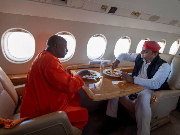 अखिलेश यादव ने सीएम योगी जैसे दिखने वाले शख्स संग किया भोजन
