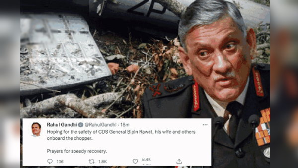 कई सियासी हस्तियों ने भी टि्वटर पर हादसे को लेकर ट्वीट किए हैं। कांग्रेस के शीर्ष नेता राहुल गांधी ने लिखा- 'हेलिकॉप्टर में सवार CDS जनरल बिपिन रावत, उनकी पत्नी और अन्य लोगों की सुरक्षा की आशा करता हूं। शीघ्र स्वस्थ होने की प्रार्थना।'
