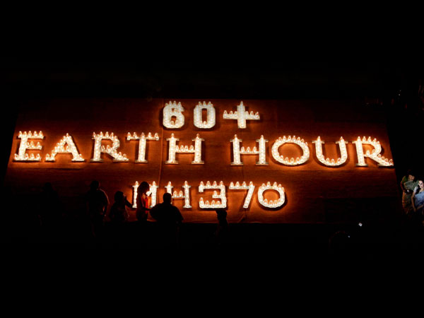 एक संगठन के कार्यकर्ताओं ने अर्थ ऑवर के दौरान कुछ इस प्रकार लालटर्न जलायीं।