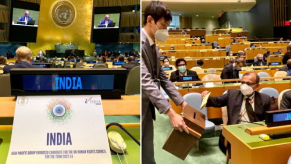 नई दिल्ली, अक्टूबर 15: भारत गुरुवार को संयुक्त राष्ट्र मानवाधिकार परिषद (यूएनएचआरसी) में 2022-24 के लिए पुन:निर्वाचित हुआ है। भारत यूएनएचआरसी में छठी बार चुना गया है। इसके बाद भारत ने 'सम्मान, संवाद और सहयोग' के जरिए मानवाधिकारों की सुरक्षा और इन्हें प्रोत्साहित करने के लिए अपने कार्य जारी रखने की प्रतिबद्धता जताई। चुनाव में डाले गए 193 मतों में से भारत को सर्वाधिक 184 मत मिले।
