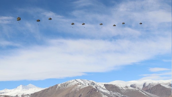 भारतीय सेना ने सोमवार को चीन से तनातनी वाले पूर्वी लद्दाख एरिया में अपनी तीव्र प्रतिक्रिया क्षमताओं को साबित करने के लिए हवाई अभ्यास शुरू किया है, जिसमें सैनिकों और उपकरणों के मूवमेंट, सटीक स्टैंड-ऑफ ड्रॉप्स, रेपिड ग्रुपिंग और कम समय में गति और आश्चर्य के साथ टारगेट को पकड़ने की क्षमता शामिल है।