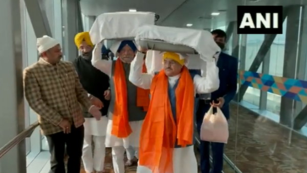 अफगान से भारत पहुंचे हिंदू-सिख समुदाय के लोग, 'गुरु ग्रंथ साहिब' को सिर पर लेने खुद पहुंचे जेपी नड्डा