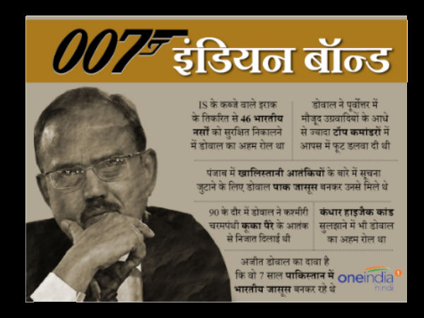 71 वर्षीय डोवाल को इंटेलीजेंस और कोवर्ट ऑपरेशंस की दुनिया में लीजेंड करार दिया जाता है। जिस तरह से अपने इंटेलीजेंस ऑपरेशंस को अंजाम देते थे, उसकी वजह से उन्हें कुछ लोगों ने भारत का जेम्स बांड तक करार देना शुरू कर दिया था।