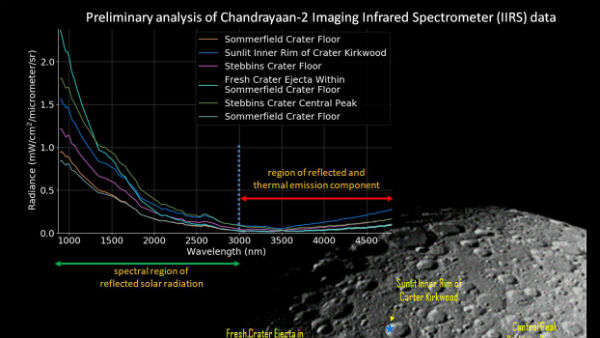 इसरो ने गुरुवार को चंद्रमा की सतह की तस्वीर साझा की है, इस तस्वीर को चंद्रयान 2 के IIRS (इमेजिंग इन्फ्रारेड स्पेक्ट्रोमीटर) ने ली है, IIRS को इस तरह से डिजाइन किया गया है जिससे वह चंद्रमा की सतह से परावर्तित होने वाले सूर्य के प्रकाश को माप सके।