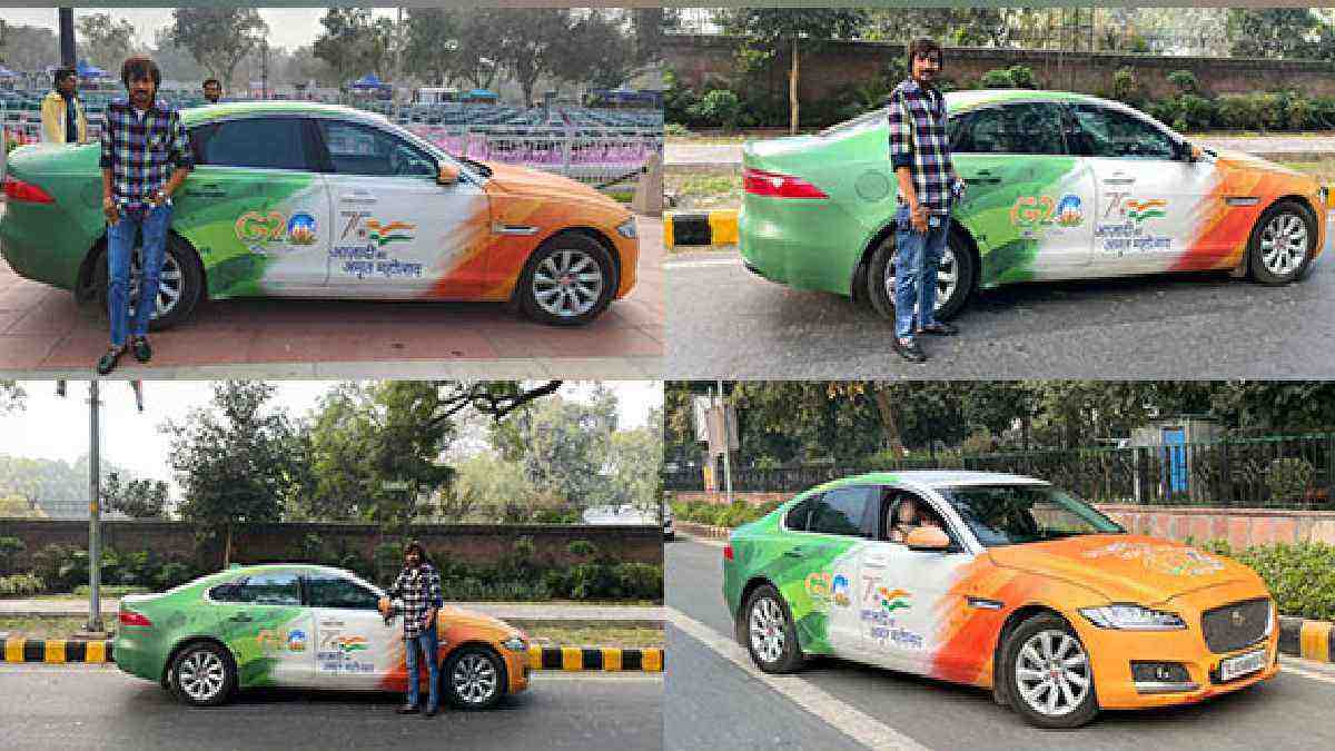 गुजरात से एक शख्स अपनी जगुआर कार को जी20 थीम में रंगकर दिल्ली पहुंचा है। उसका कहना है कि इसके माध्यम से देश को मिली कामयाबी का संदेश देना चाहते हैं, ताकि लोग इसको लेकर जागरूक बनें।