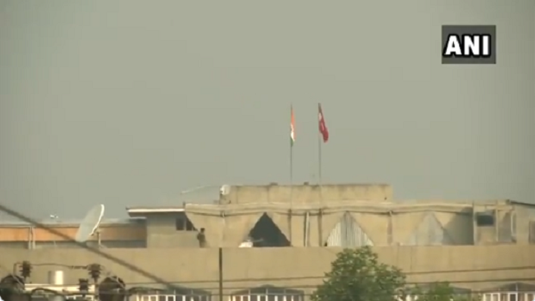सचिवालय की इमारत पर जम्मू-कश्मीर का झंडा भी लगा हुआ