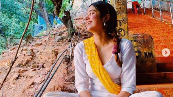 नई दिल्ली। एक्ट्रेस जाह्नवी कपूर ने आंध्र प्रदेश से अपनी तस्वीरें शेयर की हैं। तस्वीरों में जाह्नवी तिरुपति मंदिर में दिख रही हैं। वो नंगे पांव मंदिर की सीढ़ियों पर बैठी हैं। जाह्नवी ने इंस्टाग्राम पर जो तस्वीर शेयर की है, उसमें वो पहाड़ी की चोटी पर बनी सीढ़ियों पर बैठी दिख रही हैं।