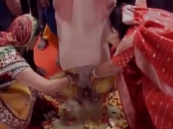 इस वीडियो में दिखाई दे रहा है कि रघुबर दास एक बड़ी सी थाली में पैर रखे हुए हैं। इस थाली में गुलाब के फूल की पंखुड़ियां भी हैं और महिलाएं उनके पैर धो रही हैं। इतना ही नहीं, जब उनके पैर धुल गए तो उन्हें सुखाने के लिए कार्यकर्ताओं ने उन्हें पकड़ कर उठाया और फिर उनके पैरों को सुखाया गया। अभी तक इस वीडियो को लेकर रघुबर सरकार की तरफ से कोई प्रतिक्रिया नहीं मिल सकी है।