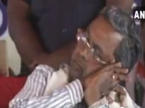 VIDEO: जब रैली के दौरान मंच पर ही सो गए कर्नाटक के सीएम सिद्धारमैया
