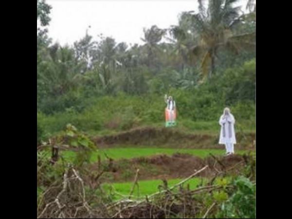 कर्नाटक में इलेक्शन के बाद खेतों से कौवे उड़ा रहे मोदी-शाह के कट-आउट