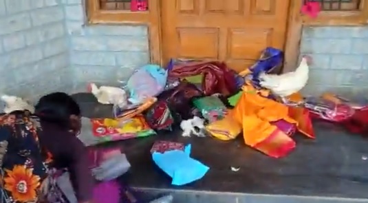 VIDEO: BJP के दरवाजे पर फेंकी गई साड़ियां, कांग्रेस का दावा- उनका रिश्वत का प्रयास फेल
