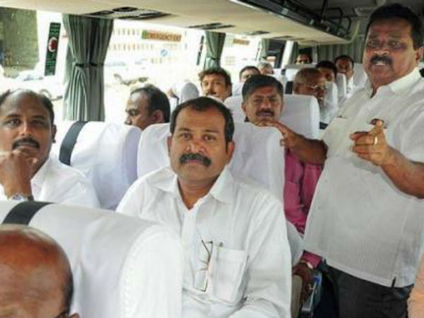 विधायकों को लेकर 3 बसें बेंगलुरू से हैदराबाद के लिए चली