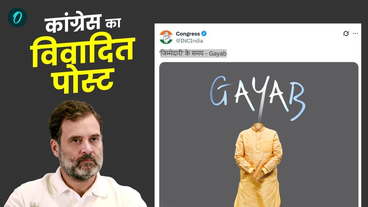 Kashmir Attack: कांग्रेस पार्टी के सोशल मीडिया हैंडस से सोमवार( 28 अप्रैल) को एक पोस्ट किया गया। जिसमें कुर्ता-पायजामा पहने व्यक्ति को बिना गले का दिखाया गया। वहीं फोटो के साथ लिखा गया कि, GAYAB। वहीं इस पोस्ट को कांग्रेस पार्टी के नेशनल x हैंडल से शेयर किया गया। वहीं फोटो के साथ लिखा गया कि, 'जिम्मेदारी के समय - Gayab'