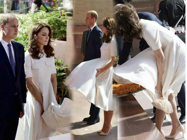 इंडिया गेट पर वॉर मेमोरियल पर श्रद्धांजलि देते वक्त तेज हवा से जब प्रिंसेस केट का ड्रेस उड़ने लगा तो वो खासा परेशान हो गईं। पूरे वक्त वो अपनी ड्रेस को ही संभालती रह गईं।