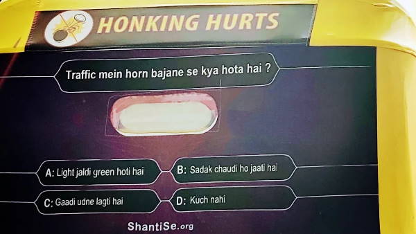 अगर आप भी इस हॉर्न से परेशान है या फिर उन लोगों में है जो लगातार हॉर्न बजाए जा रहे होते हैं तो फिर ये फोटो बस आपके लिए ही है। ये तस्वीर दरअसल एक बैनर है जो दिल्ली के एक ऑटोरिक्शा पर लगा हुआ है। इसी पोस्टर में एक बहुत ही साधारण सा सवाल पूछा गया है लेकिन पूछने का स्टाइल है कौन बनेगा करोड़पति वाला।