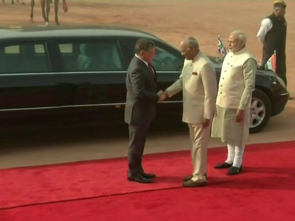 जॉर्डन के किंग अब्दुल्ला (II) तीन दिनों की भारत यात्रा पर आए हुए हैं। गुरुवार को राष्ट्रपति भवन में जॉर्डन के सुल्तान का प्रधानमंत्री नरेंद्र मोदी और राष्ट्रपति रामनाथ कोविंद ने स्वागत किया। यहां पर जॉर्डन के सुल्तान को गार्ड ऑफ ऑनर दिया गया।