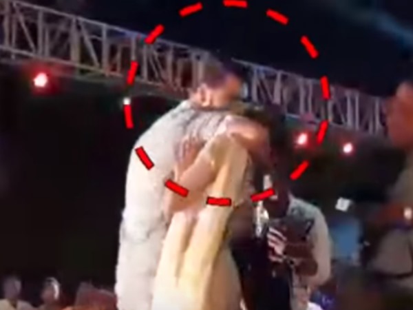 सपना चौधरी स्टेज पर डांस कर रही थीं कि तभी एक शख्स स्टेज के ऊपर आकर डांस करने लगता है और अचानक सपना चौधरी को चूमने लगता है।