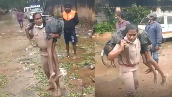 VIDEO:भयानक बाढ़ में फंसे शख्स की महिला इंस्पेक्टर ने बचाई जान, कंधों पर रख पहुंचाया अस्पताल