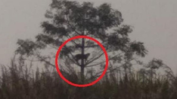 पेड़ पर चढ़ा तेंदुआ