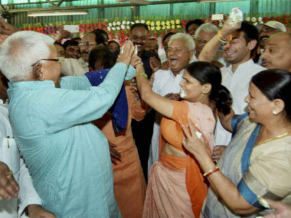 केक काटने के बाद लालू ने केक का टुकड़ा अपनी पत्नी राबड़ी देवी को खिलाया और उसके बाद अपने बेटे तेजस्वी को, उसके बाद वो अपनी साली के पास भी केक खिलाने पहुंचे, केक उन्होंने गिरजा देवी को खिलाया भी और मुंह पर पोत भी दिया। जिसके बाद गिरजा देवी ने भी लालू के चेहरे पर केक पोतने की कोशिश करने लगी लेकिन वो लगा नहीं पायीं लेकिन हां उन्होंने केक उनके कपड़े में जरूर लगा दिया।