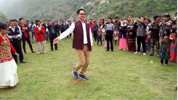 अरुणाचल प्रदेश से सांसद किरण रिजिजू ने कहा कि मूल लोक गीत और नृत्य राज्य के हर समुदाय का सार हैं। मंत्री ने पारंपरिक तरीकों से झांझ और ढोल पर नृत्य किया, और उनके आसपास की भीड़ ने ताली बजाई और सुंदर स्थान पर ताली बजाई।रिजिजू ने इससे पहले अरुणाचल प्रदेश के नवीनतम बैच के सामने गाते हुए अपना एक वीडियो भी साझा किया था, जब उन्होंने भारत की शीर्ष अकादमी - 'लाल बहादुर शास्त्री राष्ट्रीय प्रशासन अकादमी, मसूरी में अरुणाचल सिविल सेवा अधिकारियों के लिए अनुकूलित प्रशिक्षण कार्यक्रम को संबोधित किया था।