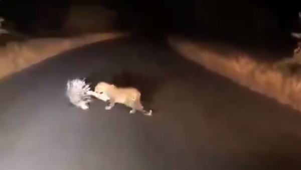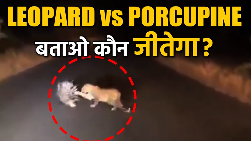 बीच सड़क पर भिड़े तेंदुआ और साही, जानवरों की लड़ाई का वीडियो वायरल