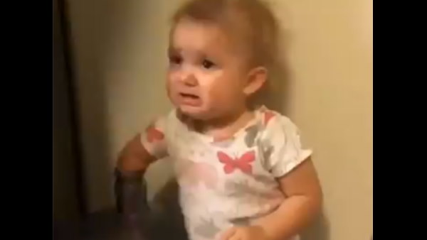 बच्ची के पिता जैसे ही वापस जाते हैं तो वो फिर से हाथ बोतल में फंसाकर रोने लगती है। वो लौटते हैं तो फिर वापस हंसती है। इस बार पिता भी उसकी शैतानी को समझते हुए उसका हाथ पकड़ते हैं को बोतल से दूर ले जाते हैं।