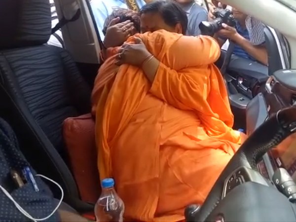 साध्वी प्रज्ञा सिंह ठाकुर के भावुक होने पर दिग्गज भाजपा नेता उमा भारती उन्हें काफी देर तक अपने गले से लगाए रहीं और चुप कराने की कोशिश कीं। उमा भारती ने साध्वी प्रज्ञा को ढांढस बंधाते हुए शांत कराया। हालांकि साध्वी प्रज्ञा के भावुक देखकर उमा भारती भी कुछ भावुक नजर आईं। साध्वी प्रज्ञा को शांत कराने के बाद उमा भारती कुछ देर उनके पास ही रहीं। इसी दौरान उन्होंने साध्वी प्रज्ञा को पानी भी पिलाने के लिए कहा। मुलाकात के दौरान उमा भारती ने साध्वी प्रज्ञा को प्रणाम भी किया।