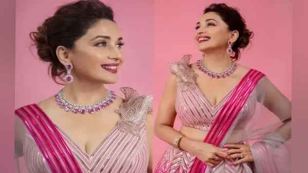 माधुरी दीक्षित ने पिंग लहंगे के साथ गहरे गले के ब्लाउज में ढाया कहर