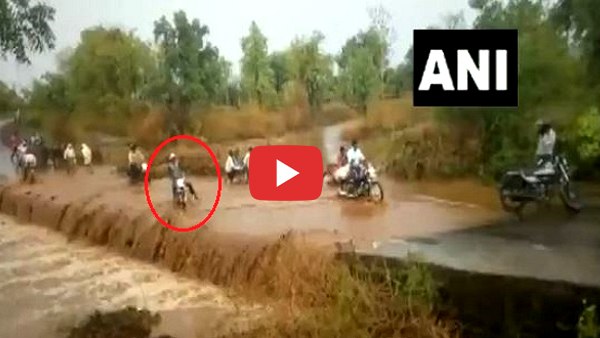 भारी बारिश के बीच सामने आया खौफनाफ VIDEO, पुलिया पार करते बाइक सहित बहा युवक
