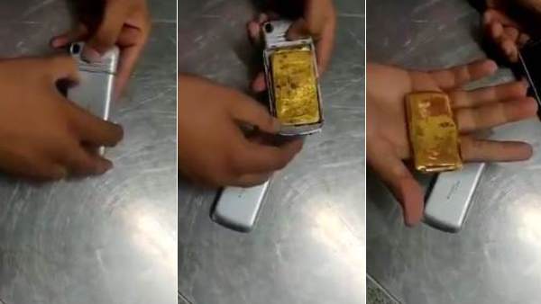 VIDEO: मोबाइल में बैट्री की जगह लगा रखा था सोने का बिस्किट, एयरपोर्ट पर गिरफ्तार