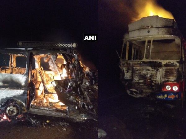 गुजरात: हादसे के बाद कार में लगी आग, 8 लोगों की मौत