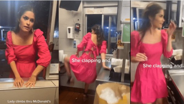 शॉर्ट वीडियो में पिंक ड्रेस में महिला मैकडॉनल्ड्स के कर्मचारियों से फूड मांगती है। रेस्टोरेंट के स्टाफ उन्हें बताते हैं कि दस्ताने की कमी के चलते वे कोई खाना नहीं बना रहे हैं। इसलिए उनका ऑर्डर कैंसिल कर दिया। इसके बाद महिला ने खुद ही मोर्च संभाल लिया।